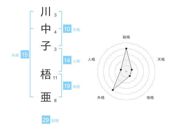 川中子 梧亜さんを姓名の画数から五運を鑑定