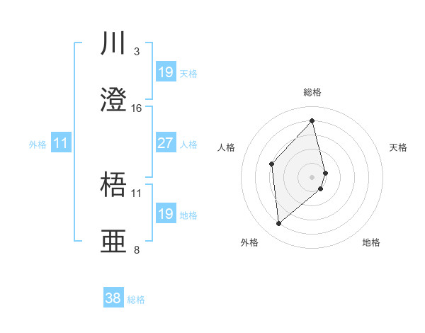 川澄 梧亜さんの総格は38画の4点!