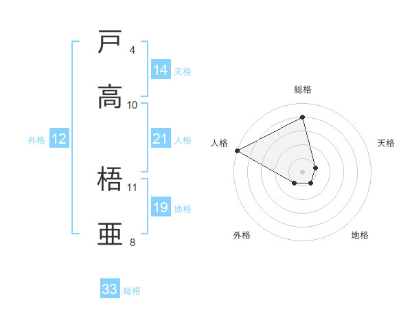 戸高 梧亜さんの総格は33画の4点!