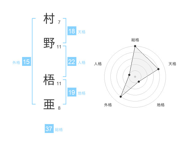 村野 梧亜さんの総格は37画の5点!