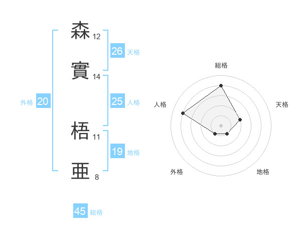 森實 梧亜さんの総格は45画の4点!