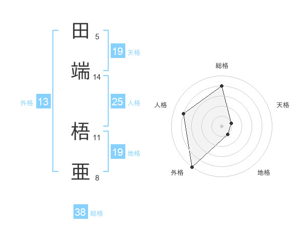 田端 梧亜さんの総格は38画の4点!