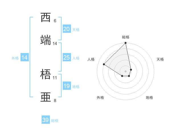 西端 梧亜さんの天格は20画の1点!