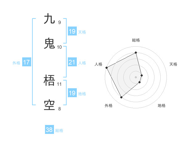 九鬼 梧空さんの外格は17画の4点!