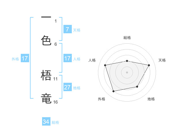 一色 梧竜さんを姓名の画数から五運を鑑定