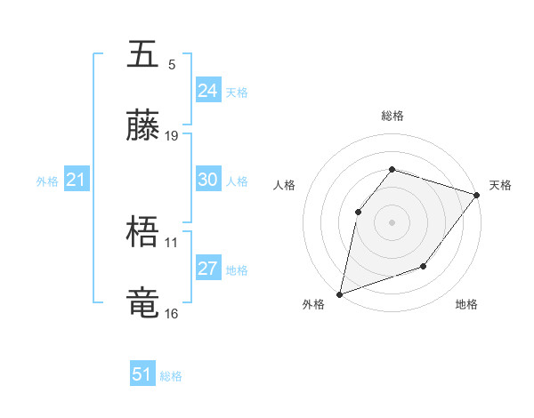 五藤 梧竜さんの総格は51画の3点!