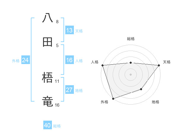 八田 梧竜さんを姓名の画数から五運を鑑定