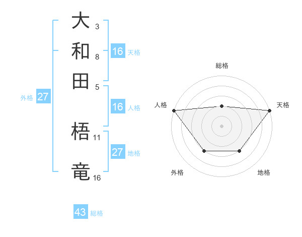 大和田 梧竜さんを姓名の画数から五運を鑑定