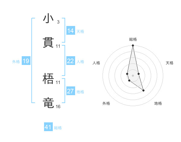 小貫 梧竜さんの総格は41画の5点!