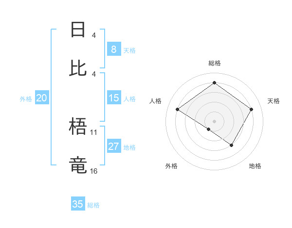 日比 梧竜さんの総格は35画の4点!