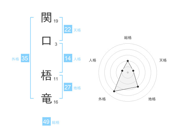 関口 梧竜さんを姓名の画数から五運を鑑定