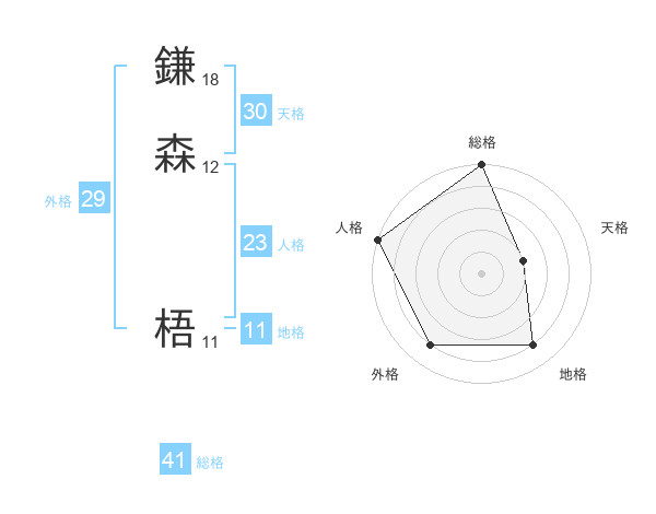 鎌森 梧さんの総格は41画の5点!