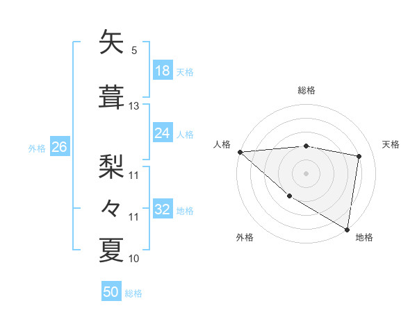 矢葺 梨々夏さんを姓名の画数から五運を鑑定
