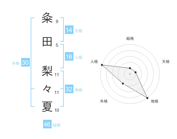 粂田 梨々夏さんを姓名の画数から五運を鑑定