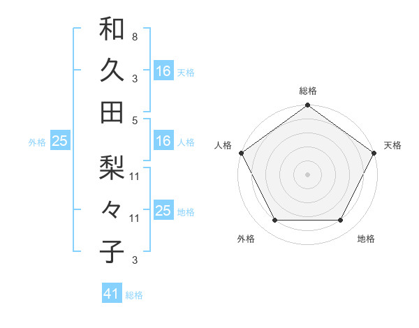 和久田 梨々子さんを姓名の画数から五運を鑑定