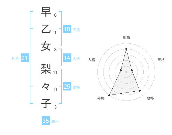 早乙女 梨々子さんを姓名の画数から五運を鑑定