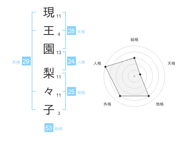 現王園 梨々子さんを姓名の画数から五運を鑑定