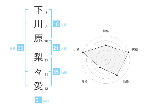 下川原 梨々愛さんを姓名の画数から五運を鑑定