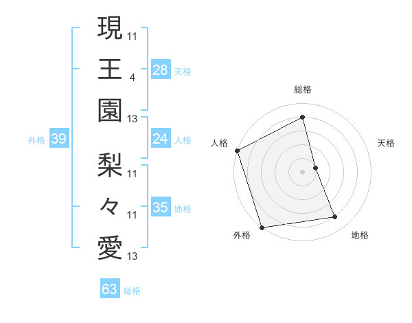 現王園 梨々愛さんを姓名の画数から五運を鑑定