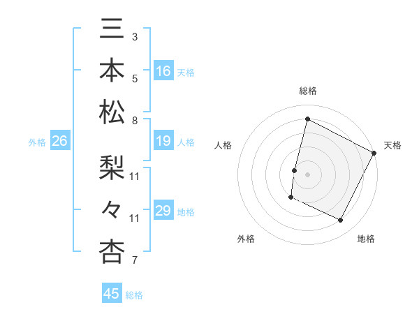三本松 梨々杏さんを姓名の画数から五運を鑑定