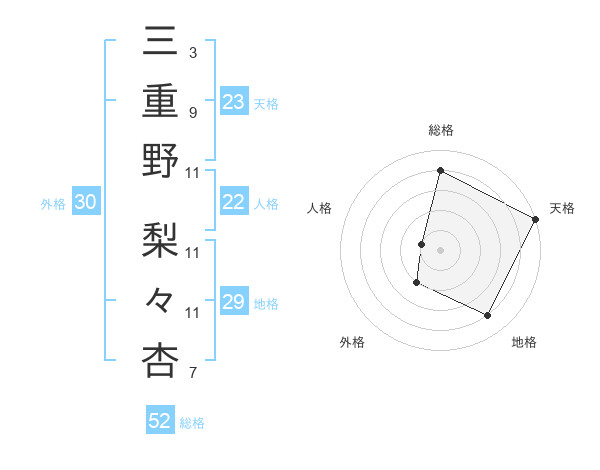 三重野 梨々杏さんの総格は52画の4点!