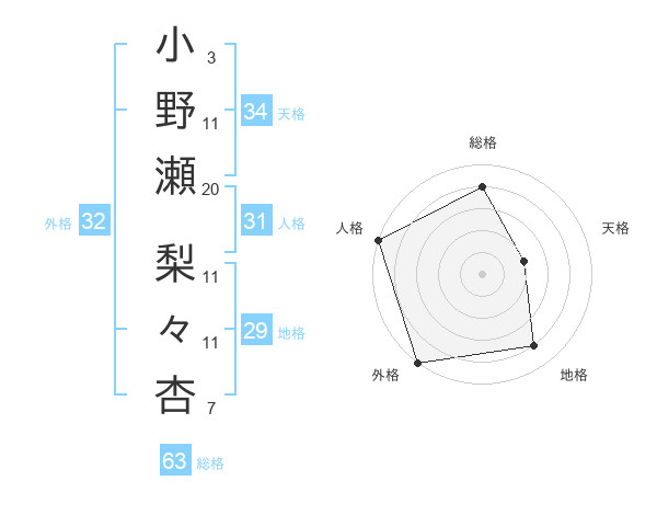 小野瀬 梨々杏さんの総格は63画の4点