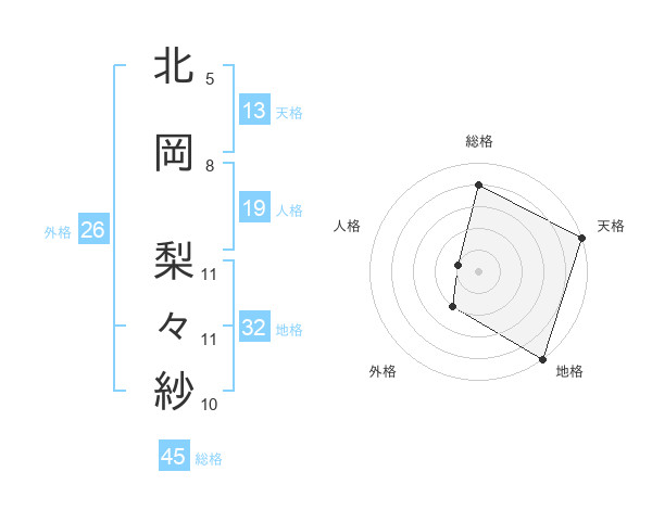 北岡 梨々紗さんを姓名の画数から五運を鑑定