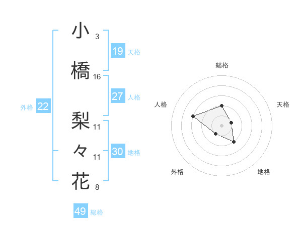 小橋 梨々花さんを姓名の画数から五運を鑑定