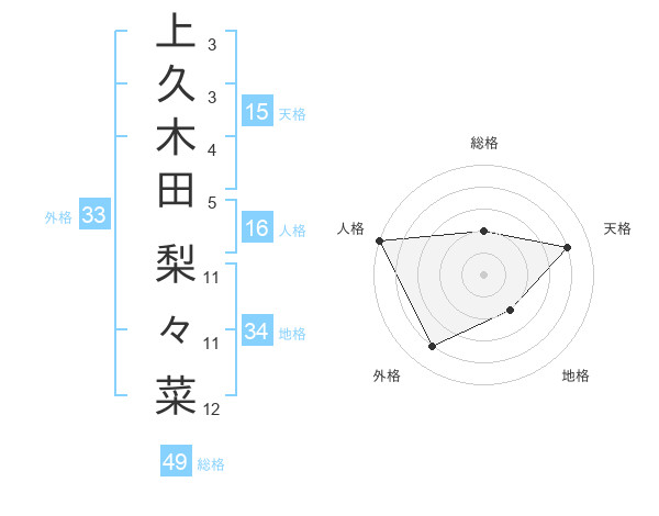 上久木田 梨々菜さんを姓名の画数から五運を鑑定