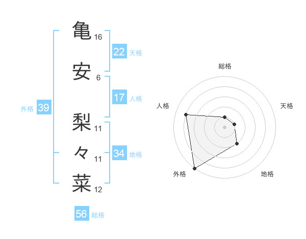 亀安 梨々菜さんを姓名の画数から五運を鑑定