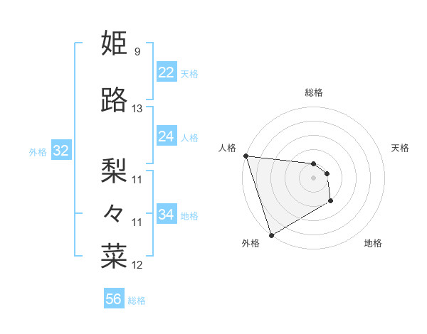 姫路 梨々菜さんを姓名の画数から五運を鑑定
