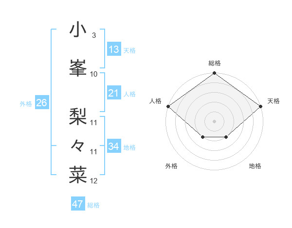 小峯 梨々菜さんを姓名の画数から五運を鑑定