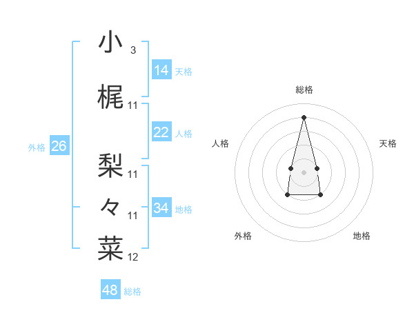 小梶 梨々菜さんの総格は48画の4点!