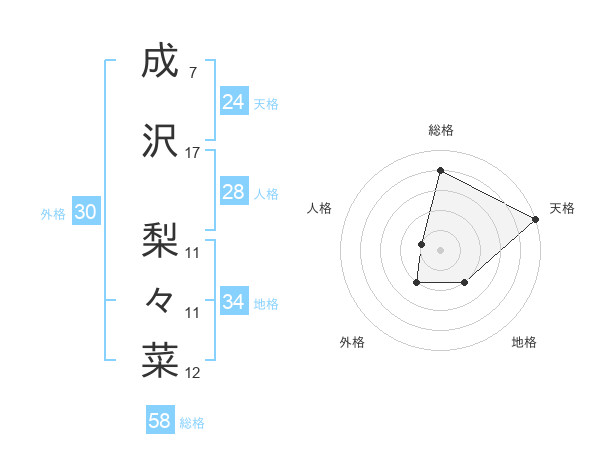 成沢 梨々菜さんを姓名の画数から五運を鑑定