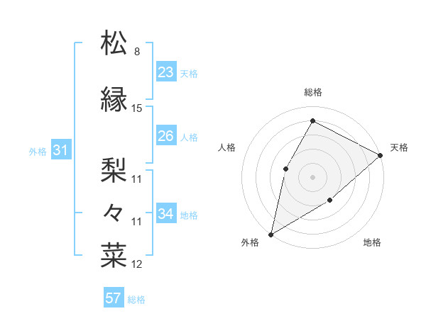 松縁 梨々菜さんを姓名の画数から五運を鑑定