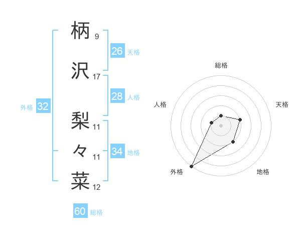 柄沢 梨々菜さんの総格は60画の1点!