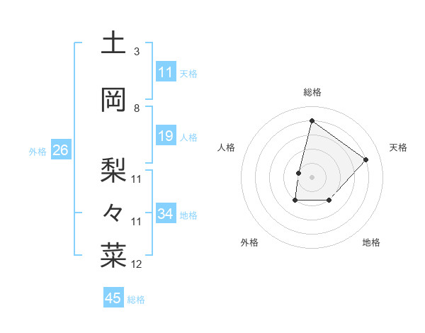 土岡 梨々菜さんの総格は45画の4点!