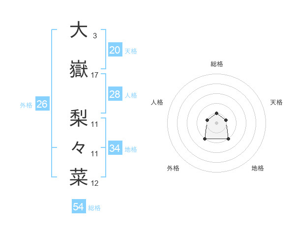 大嶽 梨々菜さんを姓名の画数から五運を鑑定