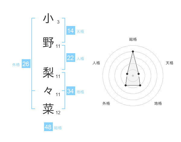 小野 梨々菜さんを姓名の画数から五運を鑑定