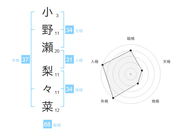 小野瀬 梨々菜さんを姓名の画数から五運を鑑定