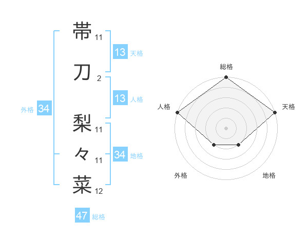 帯刀 梨々菜さんを姓名の画数から五運を鑑定