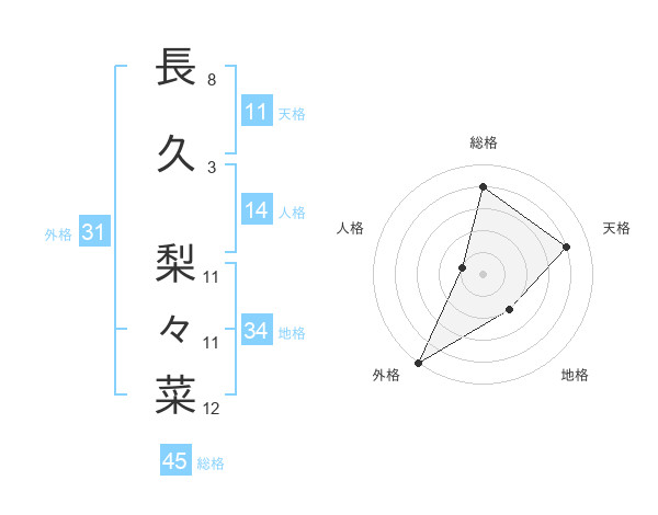長久 梨々菜さんの総格は45画の4点!