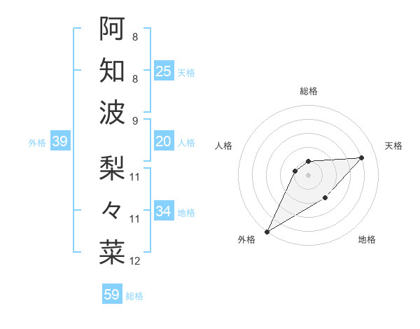 阿知波 梨々菜さんの外格は39画の5点!