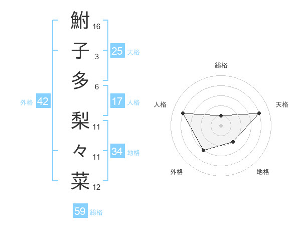 鮒子多 梨々菜さんの総格は59画の1点