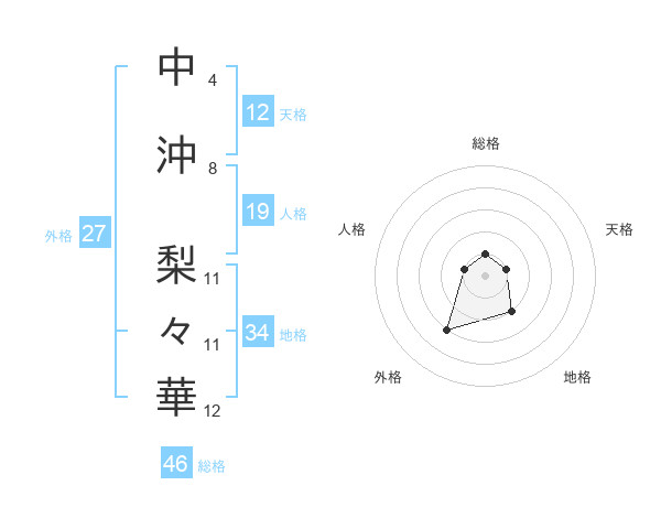 中沖 梨々華さんの天格は12画の1点!