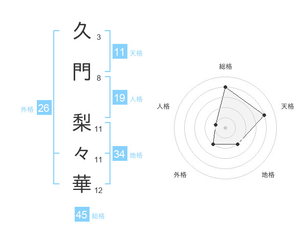 久門 梨々華さんを姓名の画数から五運を鑑定