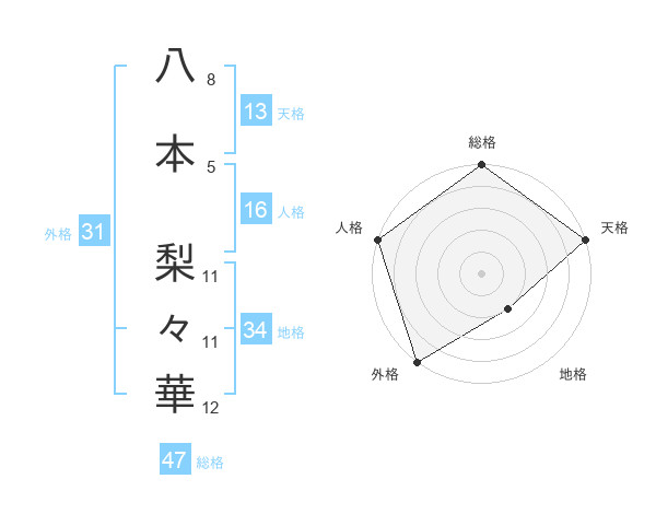 八本 梨々華さんを姓名の画数から五運を鑑定
