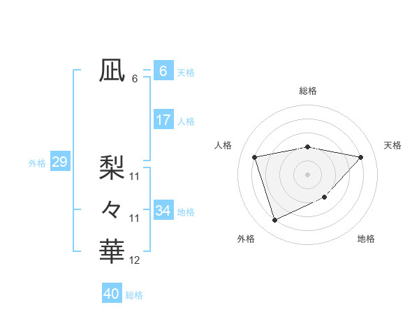 凪 梨々華さんの総格は40画の2点!