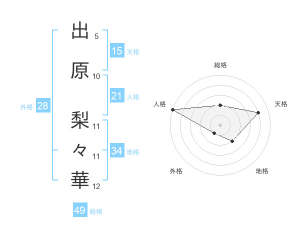 出原 梨々華さんの総格は49画の2点!