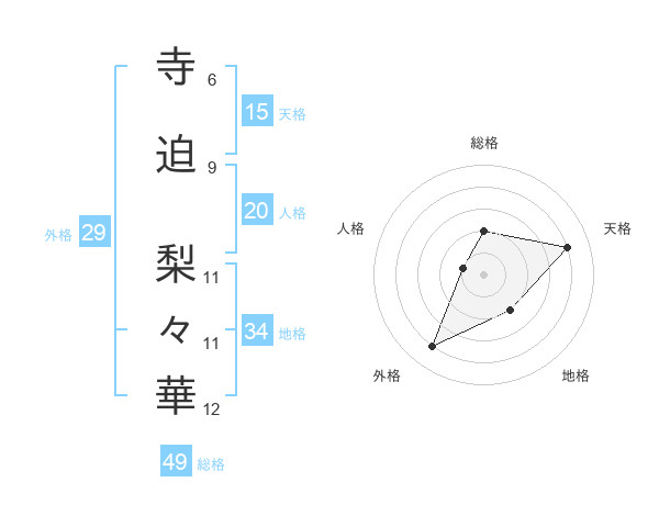 寺迫 梨々華さんを姓名の画数から五運を鑑定
